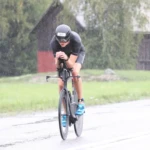 Nach den 1900m Schwimmen im See in 27:34min, ging es auf die 90km lange Radstrecke. Diese war auch trotz des Unwetters ein Erlebnis, hatte es mit knapp 800 Höhenmetern jedoch auch in sich. Felix fuhr mit einer durchschnittlichen Geschwindigkeit von 41 km/h und absolvierte diese in einer Zeit von 2:11h.